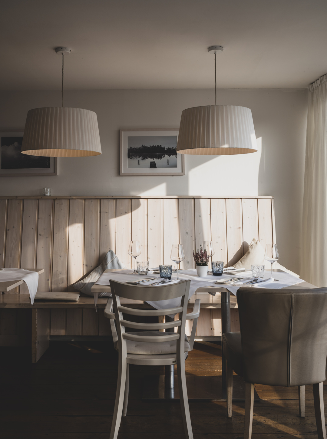 Die Architektur der Blauen Gans, sowie die Gestaltung der Gasträume passt sich der Einfachheit und Schönheit der sie umgebenden Landschaft an. Diese Landschaft und der sorgsame Umgang mit deren Ressourcen bestimmt die Küchenlinie und damit unser kulinarisches Angebot.